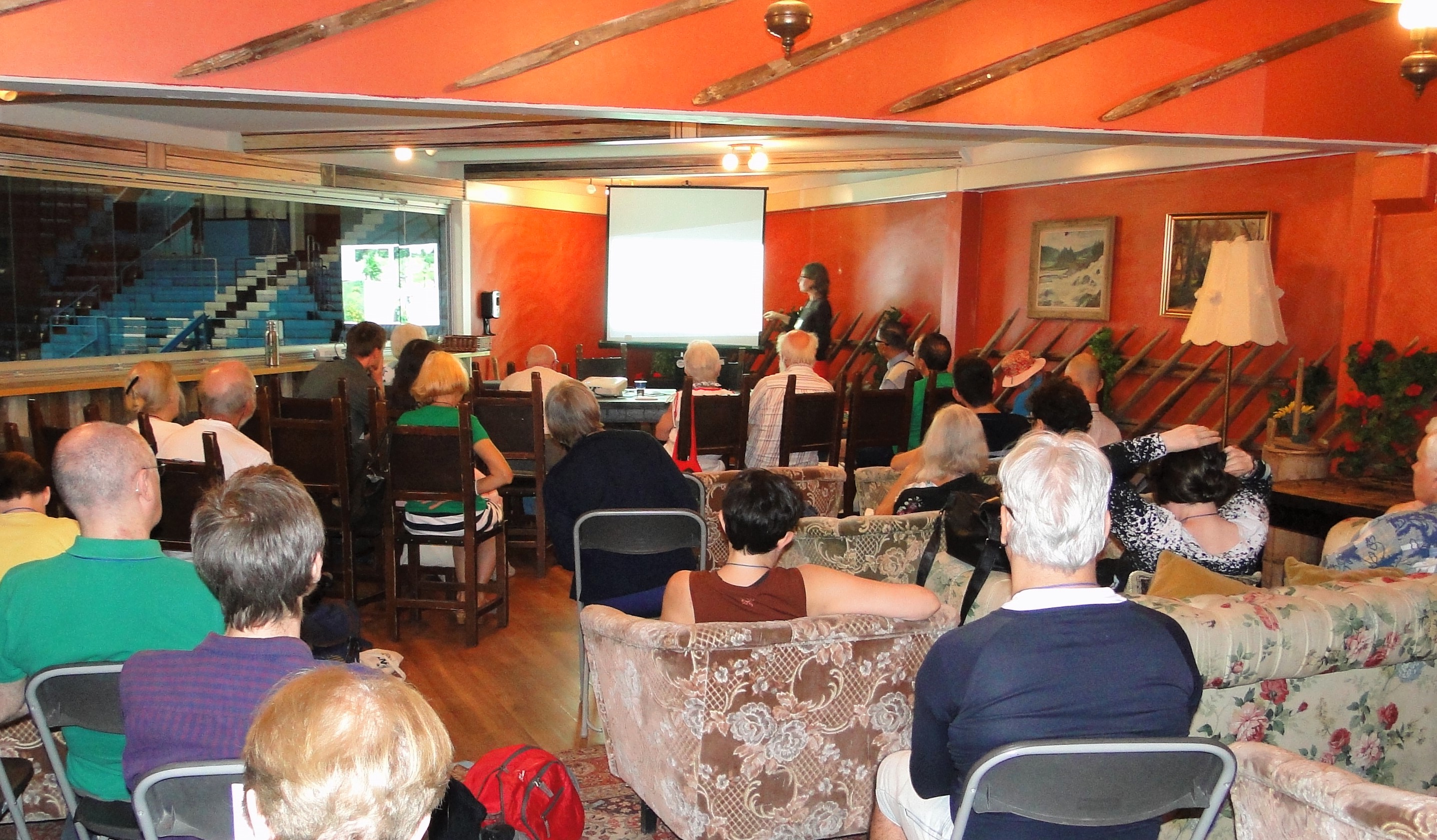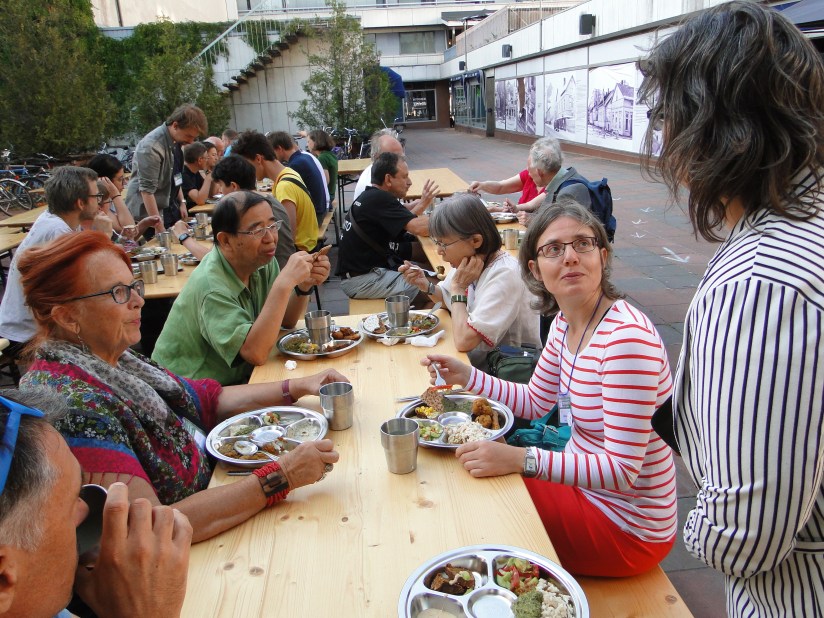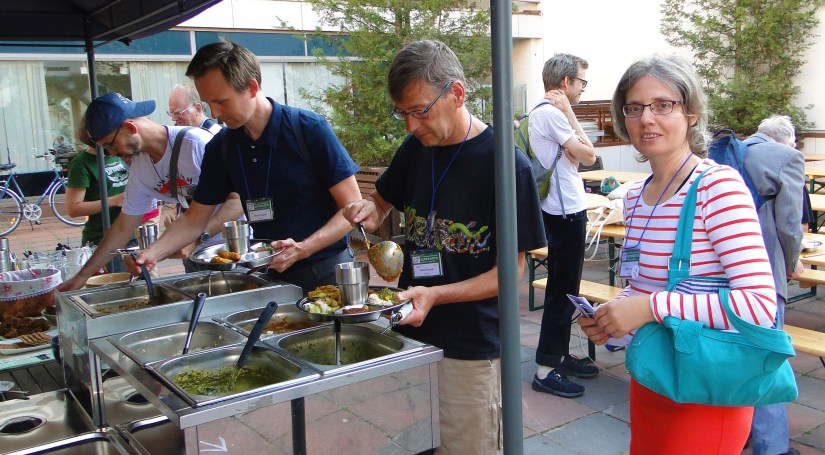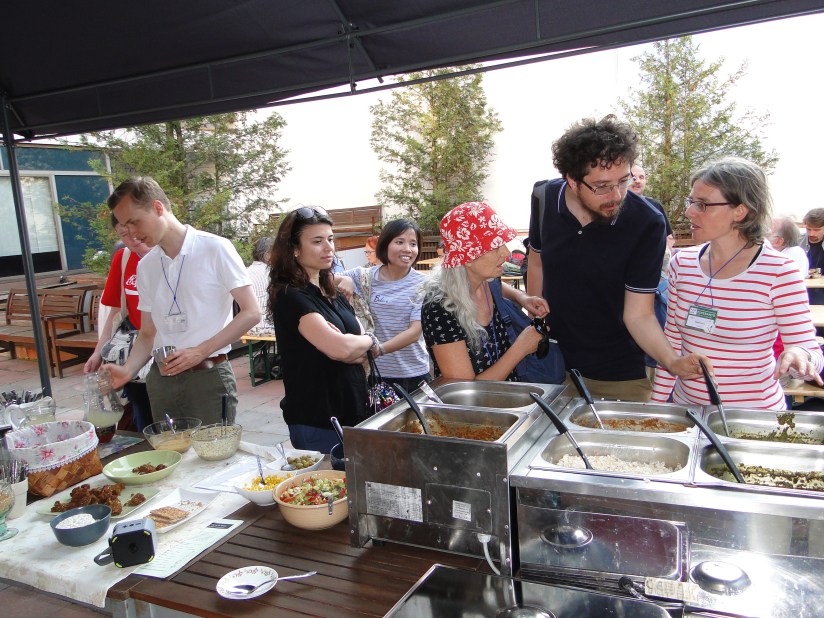 Pli frue ol kutime, jam en dimanĉo, estis programita la kunsido de TEVA. Dum la teknikisto alportis kablon kaj taŭgan projekciilon, prof. So Gilsu (KR) parolis pri sia vivstilo, interalie pri tio, ke li jam de 8 jaroj kutime manĝas krude (kaj vegane). Poste Heidi Goes (BE) mallonge prezentis la nomojn de la nova estraro de TEVA kaj atentigis pri la renovigita retejo (www.vegetarismo.info). Sekvis prelegeto pri arbarĝardenoj kaj permakulturo. Post ĉiu el la prezentoj sekvis pluraj demandoj el la publiko, kiu konsistis el 25-30 personoj.